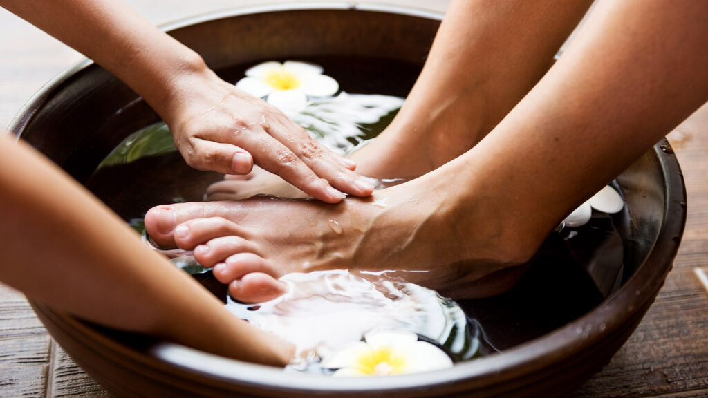 Coloque água morna na bacia, adicione umas gotinhas de óleo essencial (ou aquele sabonete cheiroso que você ama) e deixe os pés e mãos de molho por uns 10 minutos. Relaxou? Vamos pro próximo passo!
