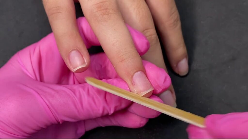 Com delicadeza, empurre as cutículas. Se for tirar, só o excesso, combinado? Sem exageros, queremos unhas saudáveis!