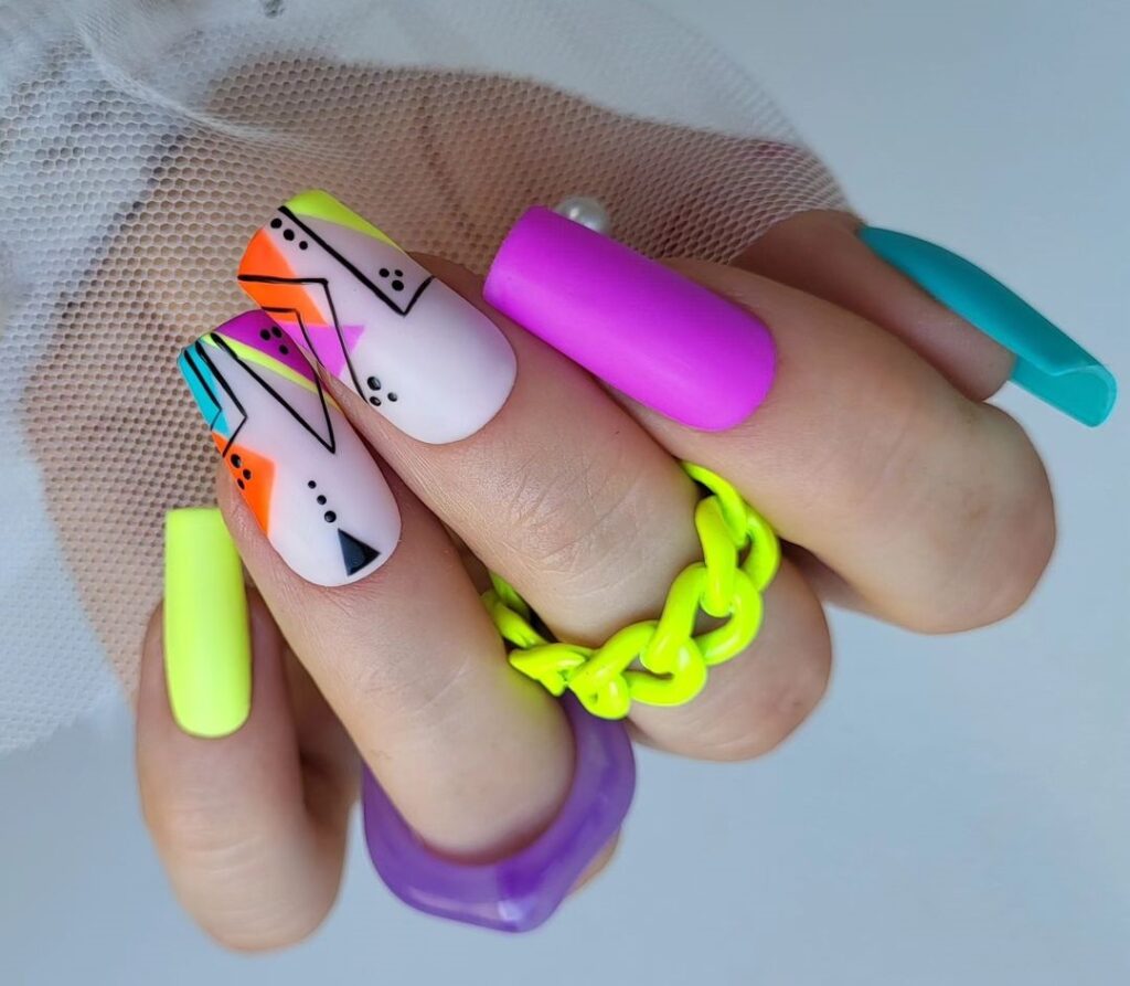 2. Unhas Coloridas Nada como um pouco de cor para animar o dia! As unhas coloridas estão super em alta e podem ser usadas de forma criativa. Escolha seus tons favoritos e faça combinações únicas.