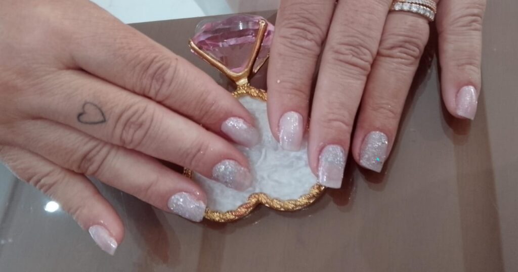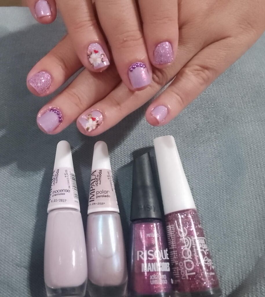 Nada grita mais glamour do que unhas decoradas com brilho adesivo e pedraria. Essa opção é ideal para ocasiões especiais, trazendo sofisticação e destaque para as mãos. Cada detalhe foi cuidadosamente colocado para criar um visual luxuoso.