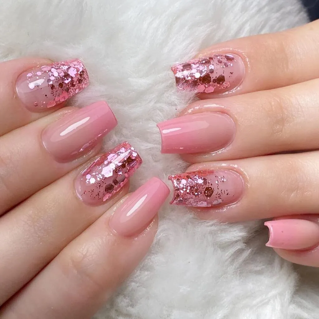 Quer brilhar? Se joga no glitter! Pode ser um degradê nas pontas ou aquele brilho total pra quem ama chegar chegando. Porque brilho nunca é demais, né?