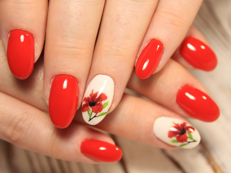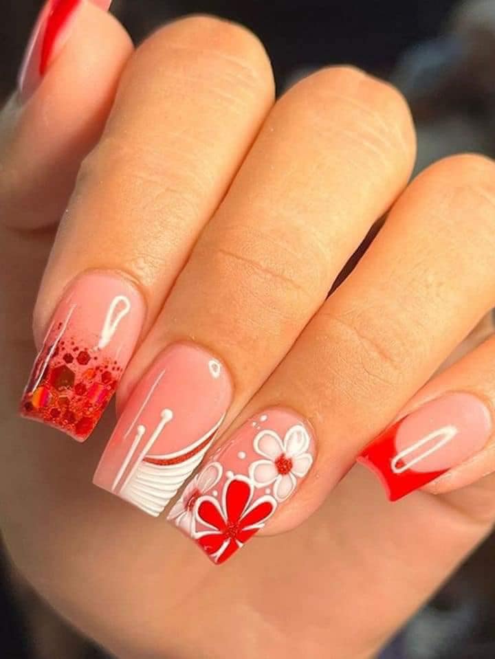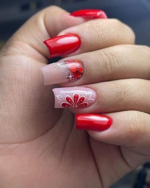 Se você ama um estilo mais delicado e romântico, adicionar flores nas unhas vermelhas é uma excelente opção. Você pode optar por flores pequenas e sutis ou criar desenhos mais elaborados, dependendo do seu gosto. As flores brancas ou douradas combinam perfeitamente com o vermelho!