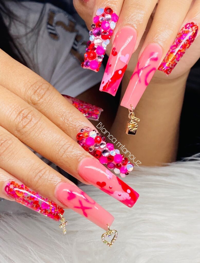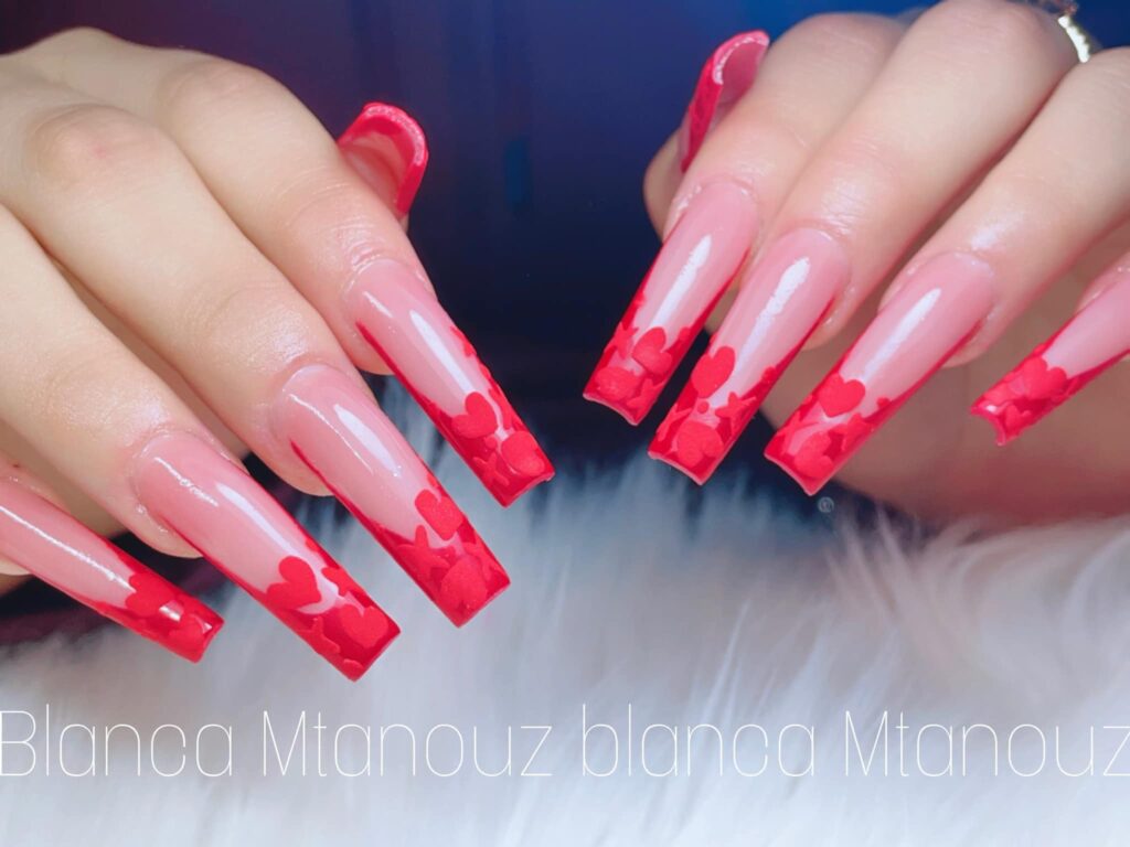 O amor está no ar, e que tal adicionar corações nas suas unhas vermelhas? Você pode desenhar pequenos corações nas unhas ou criar uma decoração com corações mais elaborados, usando esmaltes de cores diferentes para destacar os desenhos.