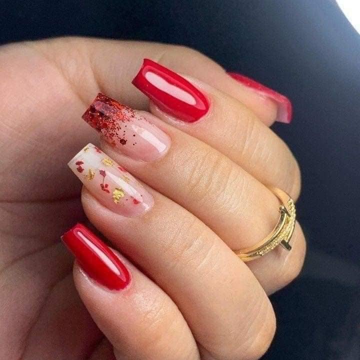 O efeito ombre (ou degradê) continua sendo uma das maiores tendências no mundo das unhas. Combine o esmalte vermelho com um tom mais claro, como nude ou rosa claro, criando um degradê suave que dá um efeito deslumbrante.